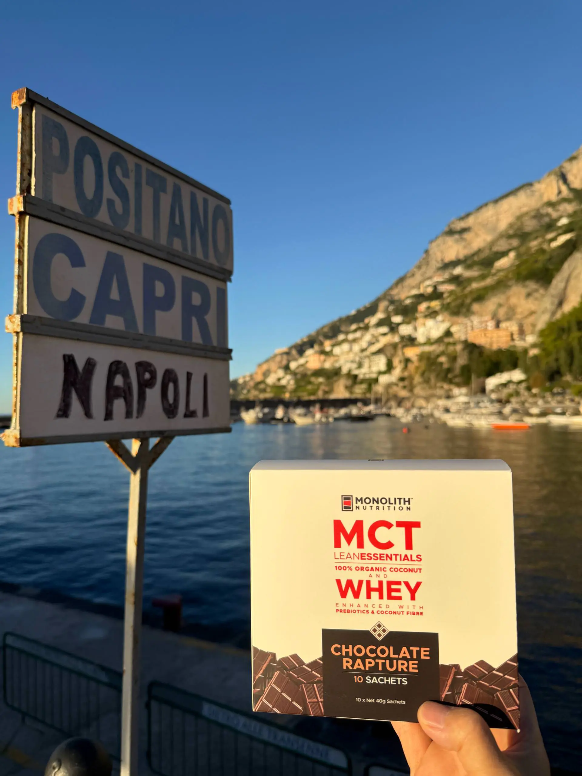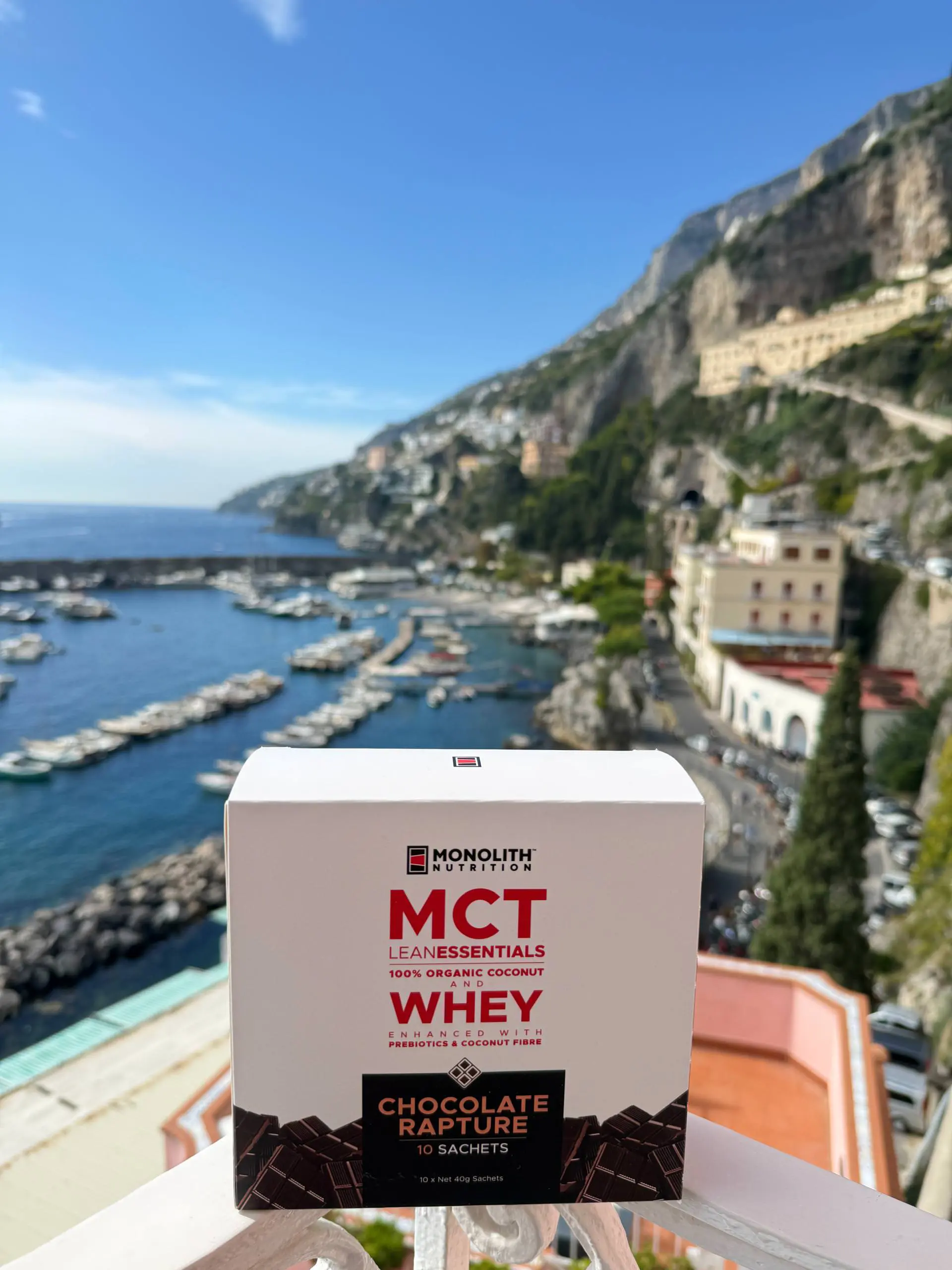 Hearty rich dark chocolate flavoured metabolic shake made with MCT, whey, and prebiotics.